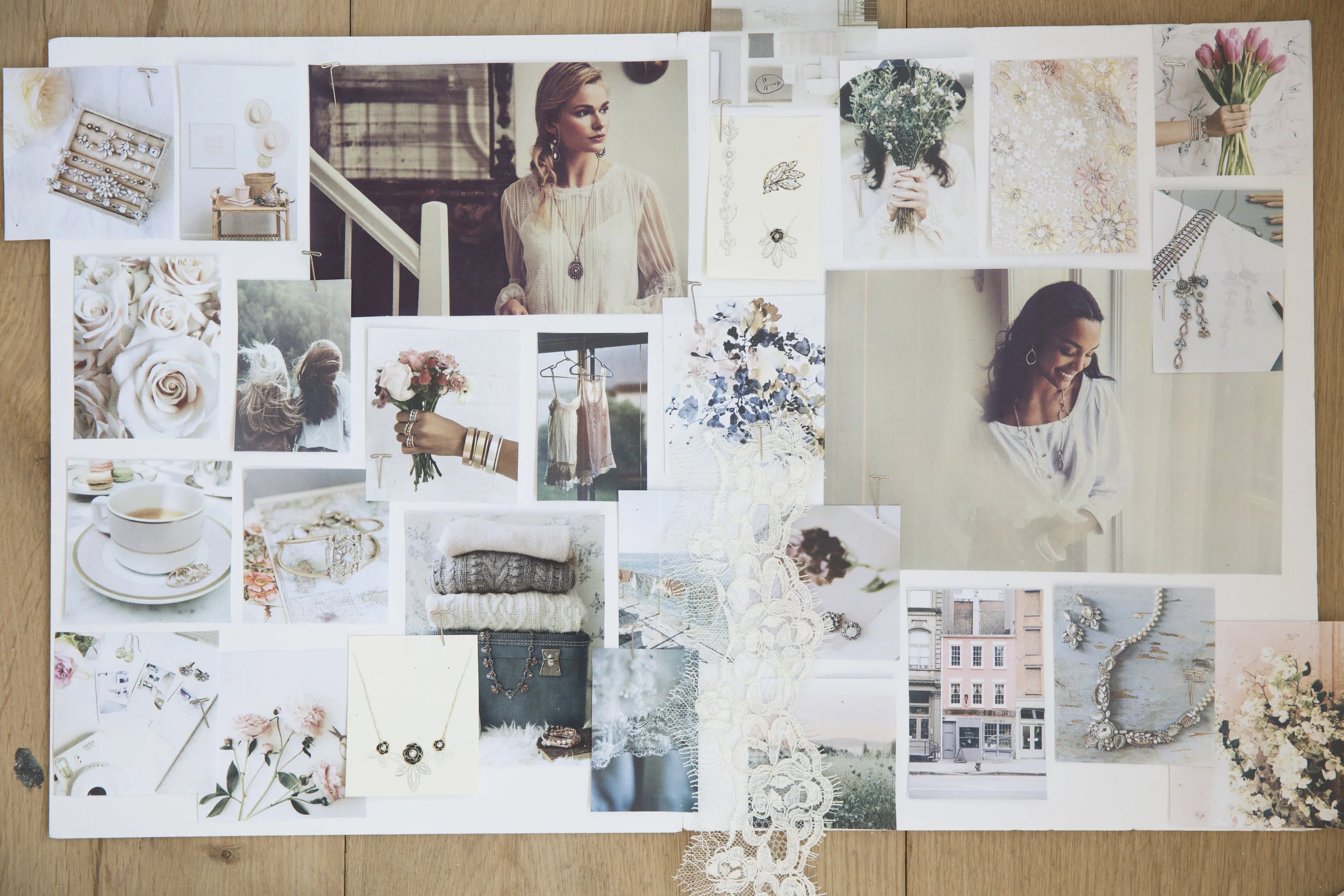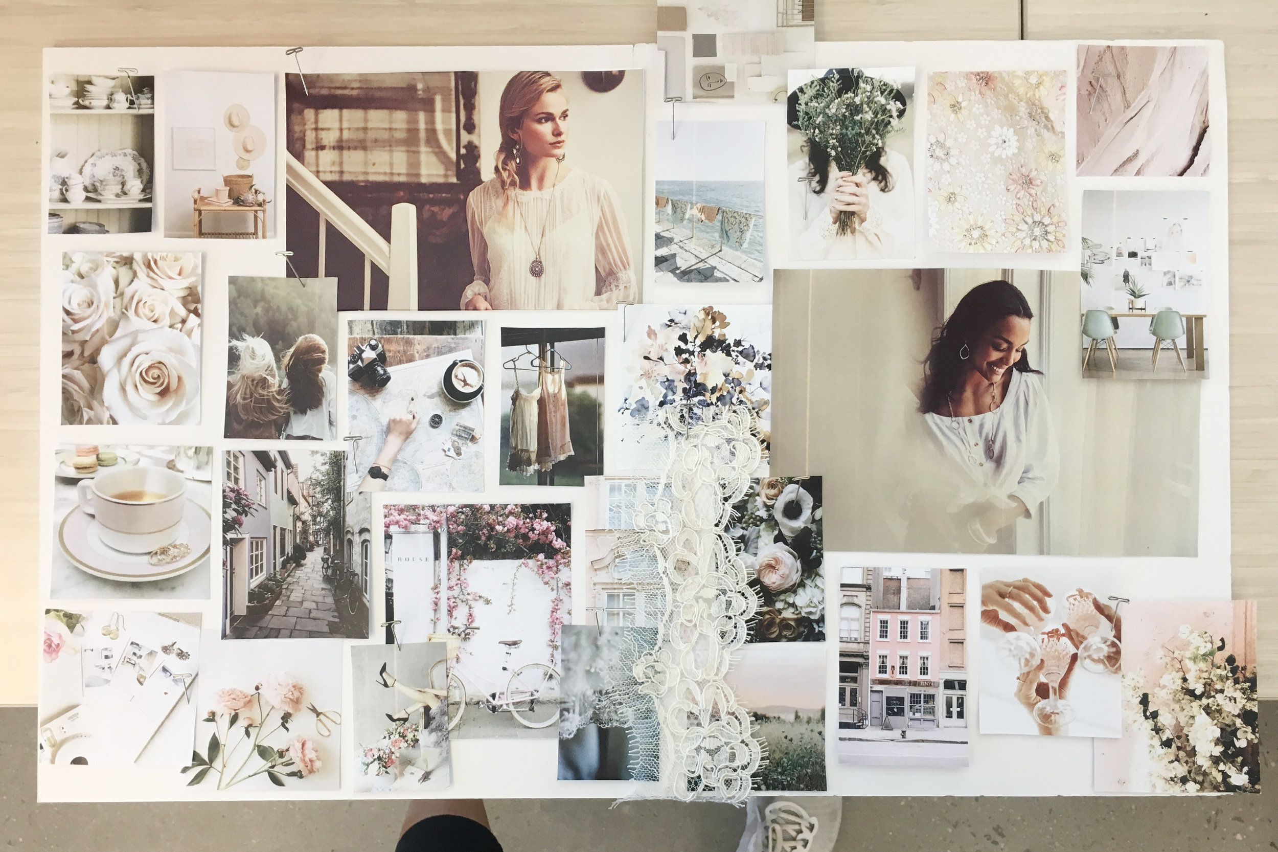 I love designing with my hands before I edit on the computer. I wanted to show the inspiration behind the brand in an interesting and unique way by using more organic methods. I was able to achieve this by creating a mood board that was photographed then edited in photoshop. Here you can see the design process from start to finish.